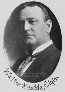 Lena McGinnis, the daughter of Anna Coats and O.H.P. McGinnis, married Walter Keeble in September 1886. Keeble, who was born in South Carolina in 1864, served two terms as a Texas State Legislator (January 1909 to November 1912). Keeble died by suicide on November 1, 1912 (Legislative Reference Library of Texas).